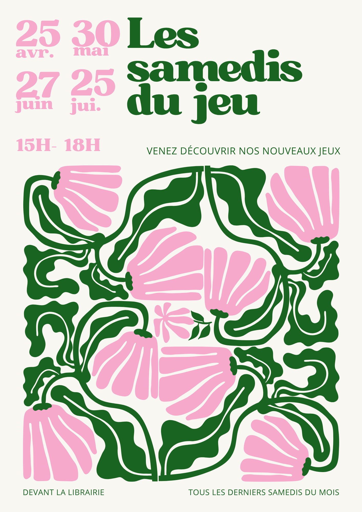 Rendez-vous devant la librairie les samedis : 25 avril, 30 mai, 27 juin et 25 juillet