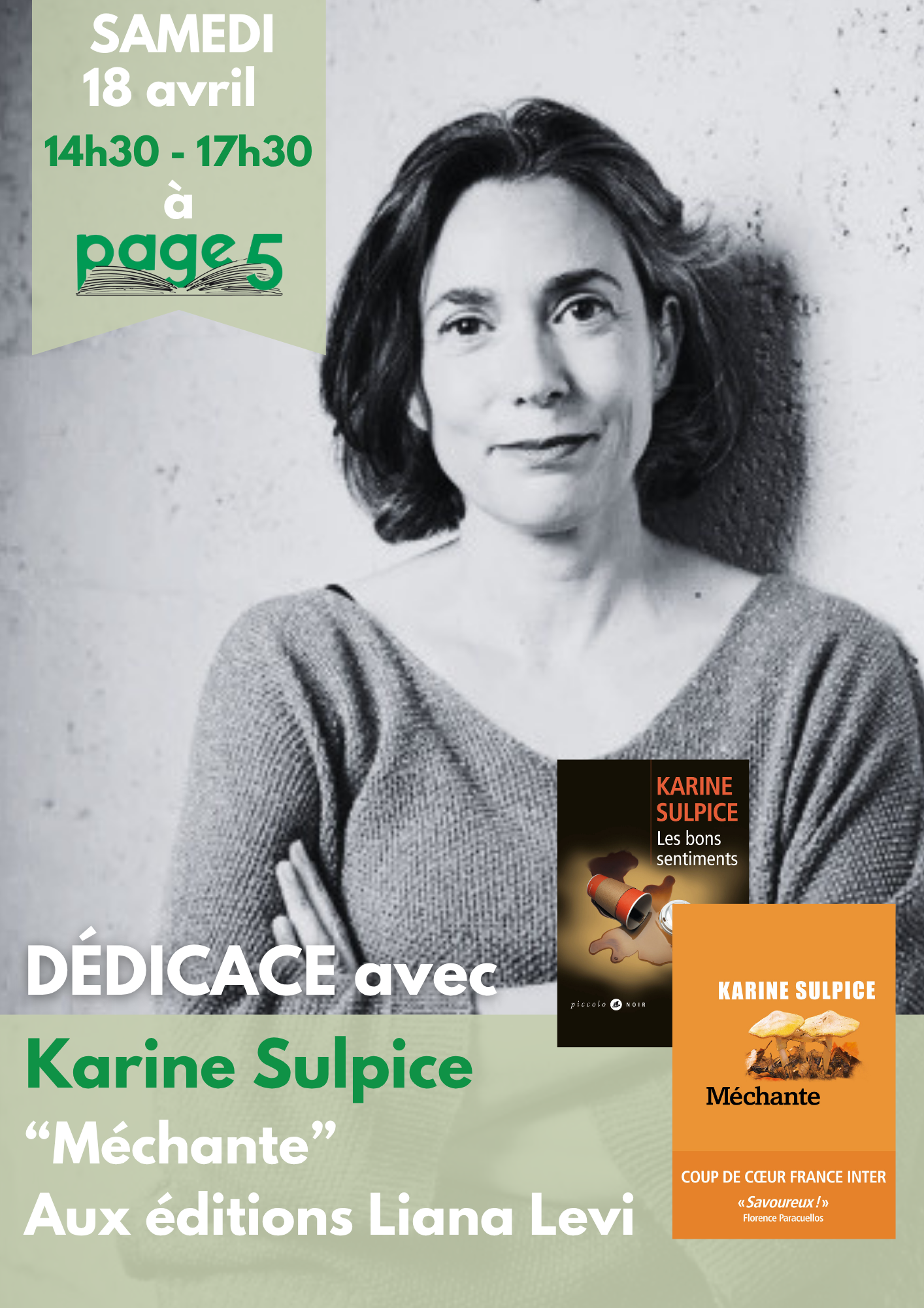 Samedi 18 avril à partir de 14h30, venez rencontrer Karine Sulpice pour une séance de dédicace. Ses deux dernières parutions sont des coups de cœur de la librairie !